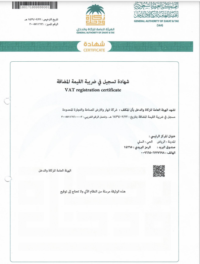 الرقم الضريبي لضريبة القيمة المضافة | متجر سليب تايم